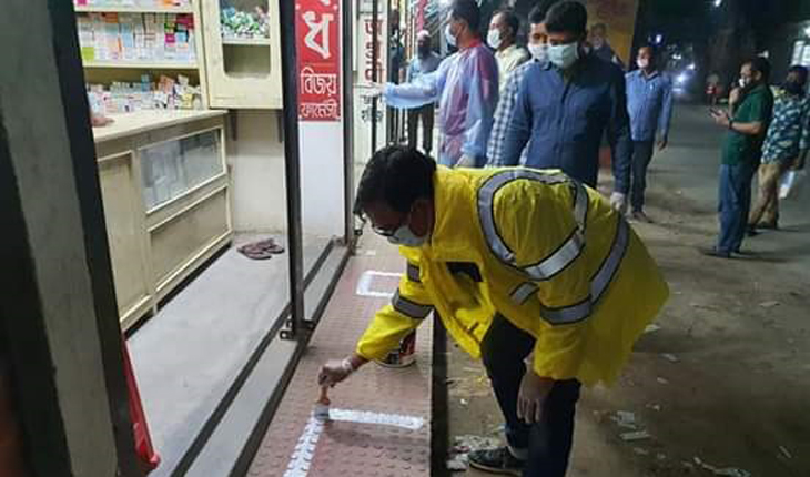 গোপালপুরে বিভিন্ন দোকানে সামাজিক দূরত্ব বজায় রাখার বৃত্ত