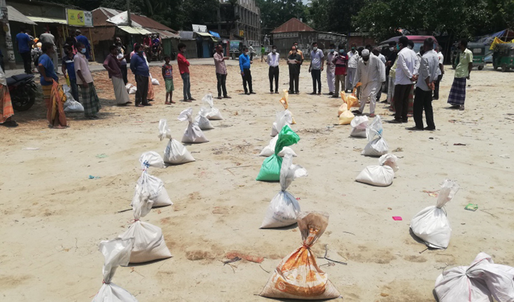 সামাজিক দুরত্ব বজায় রেখে অসহায় আদিবাসিদের হাতে তুলে দেওয়া হয় চাল, করলা, আলু।