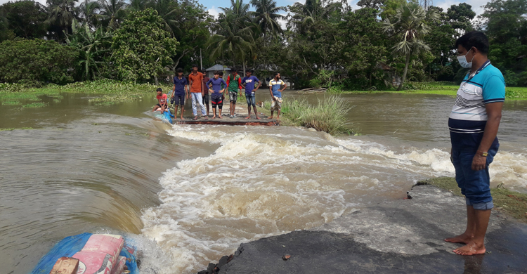 সিংড়ার তেমুক সড়কের দুটি পয়েন্টে ভেঙে যোগাযোগ বিচ্ছিন্ন