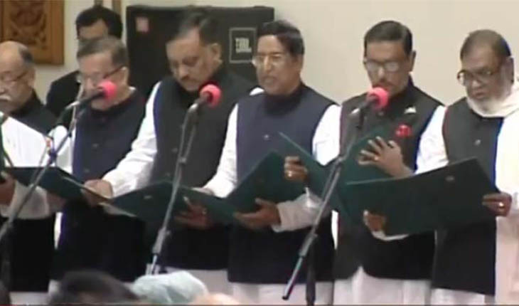 সোমবার বিকেল ৩টা ৫৬ মিনিটে বঙ্গভবনে রাষ্ট্রপতি মো. আবদুল হামিদ উপমন্ত্রীদের শপথবাক্য পাঠ করান। তার আগে প্রধানমন্ত্রী হিসেবে শপথ নেন আওয়ামী লীগ সভাপতি শেখ হাসিনা। প্রধানমন্ত্রী হিসেবে শেখ হাসিনা শপথ নিলেন চতুর্থবারের মতো। এর মধ্যে দিয়ে আনুষ্ঠানিকভাবে টানা তৃতীয়বারের মতো সরকার গঠিত হলো বাংলাদেশের স্বাধীনতা যুদ্ধে নেতৃত্ব দেয়া আওয়ামী লীগের নেতৃত্বে।