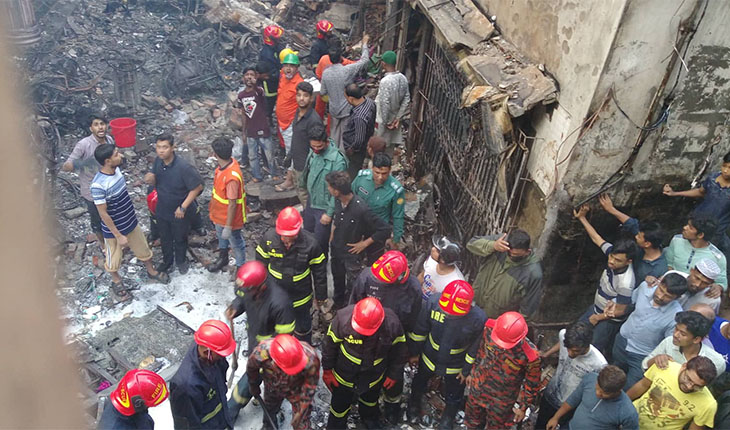 ফায়ার সার্ভিসের পাশাপাশি উদ্ধারকাজে অংশ নিয়েছে বাংলাদেশ রেড ক্রিসেন্ট এবং বিমান বাহিনীর হেলিকপ্টার।